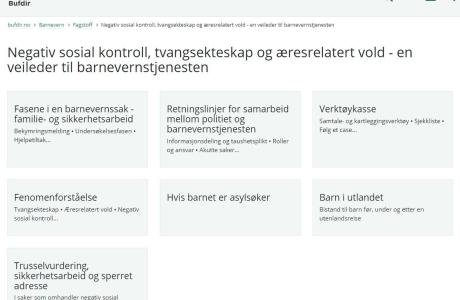 Asylsøkere, flyktninger og migranter kan være utsatt for negativ sosial kontroll og æresrelatert både i hjemland, under flukt eller i mottakerland. Transnasjonale liv, krysskulturelt press og generasjonskonflikter i mottakerland kan forsterke volden og kontrollen. Å ha kunnskap om fenomenene negativ sosial kontroll og æresrelaterte vold, herunder tvangsekteskap og kjønnslemlestelse, i flyktningbefolkningen, er derfor sentralt for å kunne forebygge, avdekke og yte nødvendig støtte og hjelp. Ressurssiden inneholder handlingsplan, veiledere, rapporter, ressurshefter, filmer, nettsider, artikler og informasjon om nasjonal opplæring.