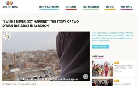 aktivt med å tilby unge flyktninger utdanning. På deres hjemmeside får dere møte de Syriske flyktningjentene, «Maisa» og «Hannan» som ble giftet bort bare 15 og 13 år gammel. I en videosnutt forteller de sine historier og opplevelser fra å være giftet bort som barn på flukt i Libanon.