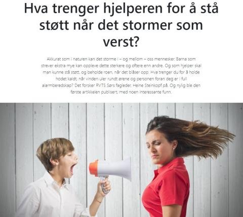 Barn som strever ekstra mye kan oppleve sterke følelsesmessige svingninger. Som hjelper skal man kunne stå støtt, og beholde roen i møte med disse. Hva trenger du for å holde hodet kaldt i slike situasjoner? Dette er belyser RVTS Sør sin fagleder, Heine Steinkopf, i fagartikkelen "Hva trenger hjelperen for å stå støtt når det stormer som verst?".