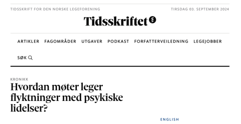 Artikkelen "Hvordan møter leger flyktninger med psykiske lidelser?" (2022) i Tidsskrift for den norske legeforening, tar for seg tematikken likeverdige helsetjenester og kulturelle bevissthet hos leger. Her kan du finne gode tips og teori som øker forståelsen av det å skape gode møter med asylsøkere og flyktninger i en medisinsk setting.