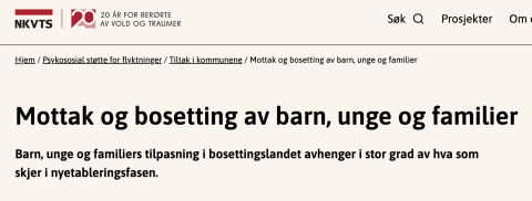 En ressurs fra NKVTS med gode tiltak for hjelp til mennesker med flukterfaringer. Her beskrives psykologisk førstehjelp, gode praktiske tiltak, normale reaksjoner på belastning og tiltak på kommunalt nivå. Den har også en egen del om selvivaretagelse for hjelperen.