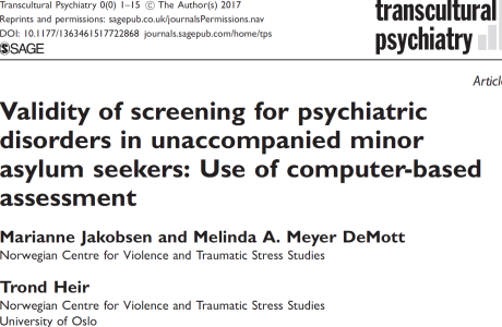 Artikkelen “Validity of screening for psychiatric disorders in unaccompanied minor asylum seekers: Use of computer-based assessment” av M. Jakobsen, M.A. Meyer DeMott og Trond Heir ble publisert i Transcultural Psychiatry 0(0), 2017, s 1–15.