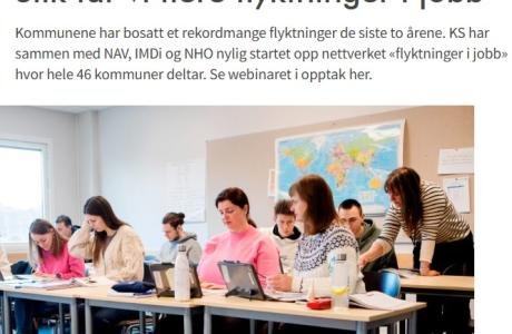 Beskrivelse: Kommunene har bosatt svært mange flyktninger de siste årene. KS har sammen med NAV, IMDi og NHO nylig etablert nettverket «flyktninger i jobb» der 46 kommuner deltar.