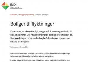 En av temasidene til IMDI, som omhandler boliger til flyktninger. Kommuner som bosetter flyktninger må finne en egnet bolig til de som kommer. Det finnes flere måter å lette dette arbeidet på. Støtteordninger, privatmarked og bofellesskap er noen av de smarte løsningene. Her ligger det informasjon på flere språk: amharisk, arabisk, dari, engelsk, farsi, russisk, somali og tigrinja.