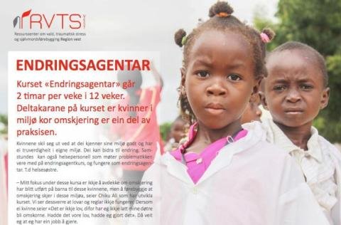 I Region Vest tilbyr RVTS Vest kurs i Endringsagenter for forebygging av kjønnslemlestelse. Kurset er ment for kvinner i miljø hvor omskjæring er en del av praksisen og som i tillegg utmerker seg og har en troverdighet i eget miljø. Samtidig kan helsepersonell som møter problematikken også være med på kursene og fungere som endringsagenter i sitt yrke.